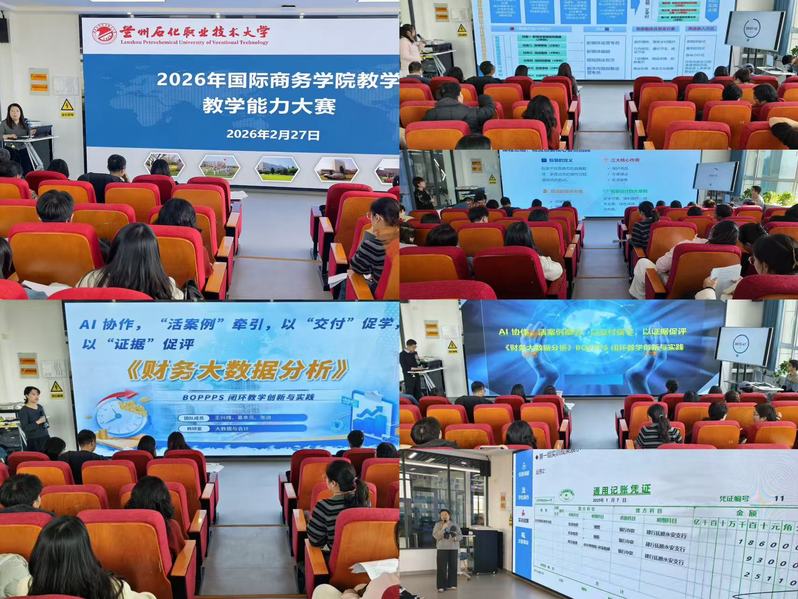 为深入贯彻国家职业教育改革精神,聚力学校“双高计划”建设,全面提升教师教学能力和育人水平,搭建教学交流与风采展示的专业平台,2月27日下午,国际商务学院在悦技楼创新创业路演室成功举办2026年教师教学能力大赛院内选拔赛。学院相关负责人、教学督导组成员、骨干教师代表及各参赛团队齐聚一堂,共赴这场以教提质、以赛促研的教学盛会。