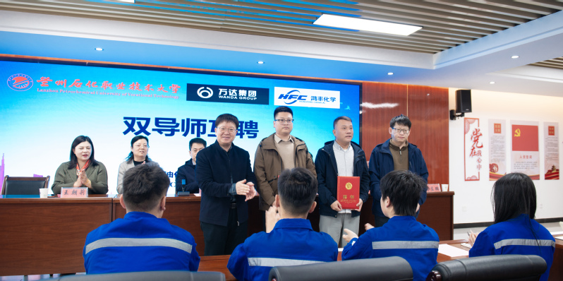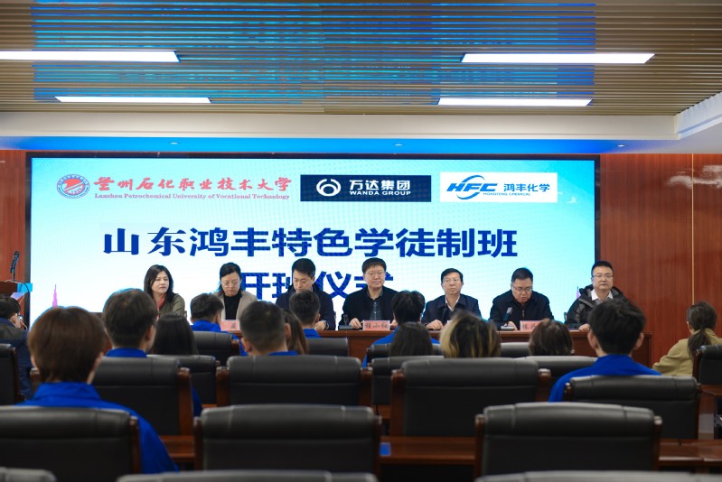 3月26日,2025级山东鸿丰特色学徒制班开班仪式在学校举行。万达控股集团人力资源总监许新鹏,山东鸿丰化学有限公司常务副总经理贾同春、副总经理王朝莉,学校党委常委、副校长程小红,招生就业处和石油化学工程学院党政负责人及教师代表,2025级山东鸿丰班全体学生参加开班仪式。