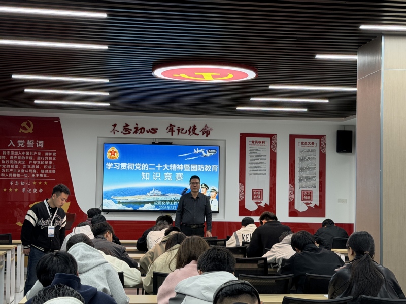 为深入学习宣传贯彻党的二十大精神,切实增强全体学生国防意识,厚植退役军人“退役不褪色、转岗不转志”的军人品格,丰富师生业余文化生活,进一步增强集体凝聚力、组织纪律性和使命感,近期,应用化学工程学院联合学校退役军人俱乐部在应用化学工程学院第二会议室举办了“强我国防 永葆初心—学习贯彻党的二十大精神暨国防教育知识竞赛,为全校退役军人及退役军人俱乐部成员搭建学习交流、比拼提升的平台。