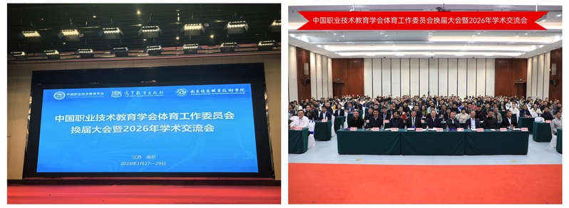 3月27日-29日,中国职业技术教育学会体育工作委员会换届大会暨2026年学术交流会在南京召开。本次会议由中国职业技术教育学会主办,学会学校体育工作委员会、高等教育出版社和南京信息职业技术学院承办。中国职业技术教育学会、江苏省教育厅、南京信息职业技术学院等单位领导和来自全国职业院校的近300名代表参加会议,中国职业技术教育学会副会长花景新出席会议。